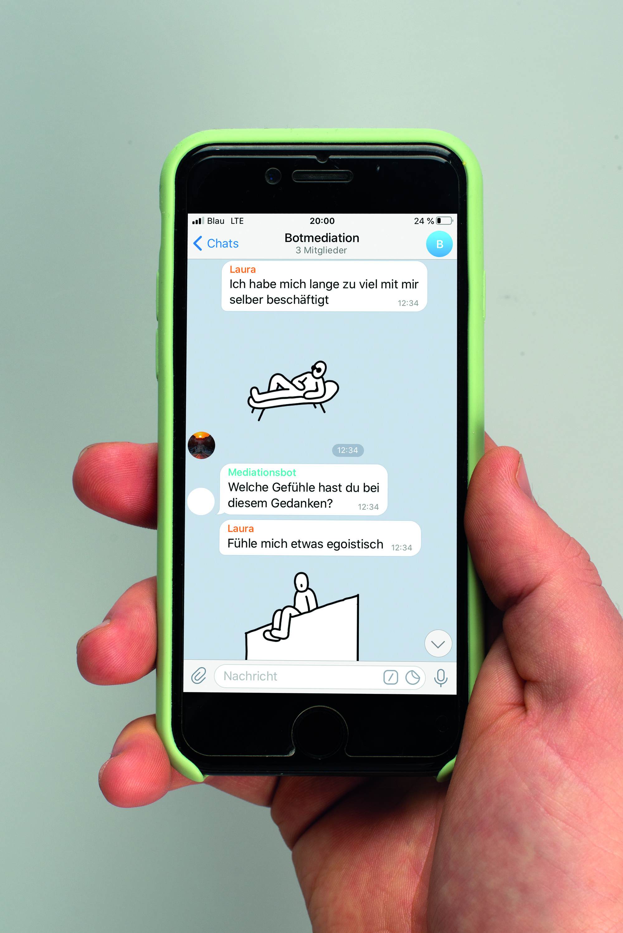 Botmediation basiert auf dem Konzept der konsensualen Konfliktlösung. Dabei bietet eine unvoreingenommene Mediationsinstanz die Möglichkeit der eigenverantwortlichen Konfliktbearbeitung in einem neutralen Raum. Die Botmediation überträgt dies in den digitalen Raum und nutzt dafür die Messenger App ‚Telegram’ als Mediationsplattform. Die Rolle der neutralen Mediationsinstanz übernimmt der Chatbot @mediationsbot.